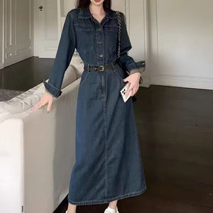 复古连衣裙牛仔初秋长袖连衣裙春秋新款港风时尚收腰显瘦长袖