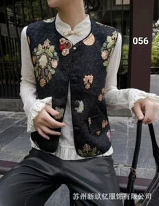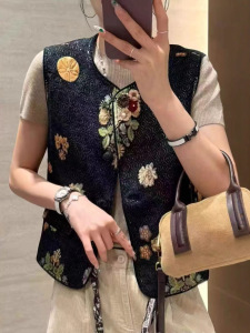 2025新款民族风复古圆领马甲女 文艺时尚刺绣提花宽松背心坎肩