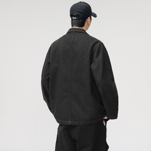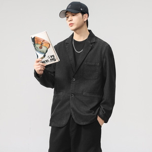 美式复古丹宁水洗西装夹克牛仔外套男春秋轻熟通勤宽松休闲西服男