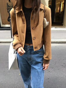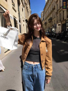 现货 2025秋季新款韩版veget*ble复古翻领单排扣短款长袖夹克外套