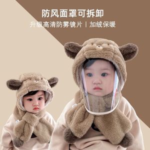 宝宝帽子秋冬季儿童帽子围巾一体加绒加厚女童可爱超萌男童套头帽