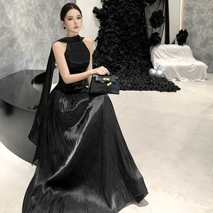 波光粼粼围巾领挂脖飘带连衣裙露背绑带看展婚纱晚礼服度假沙滩裙