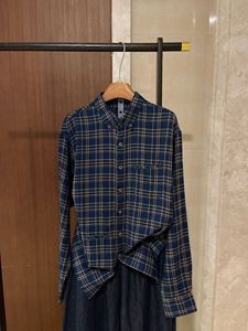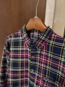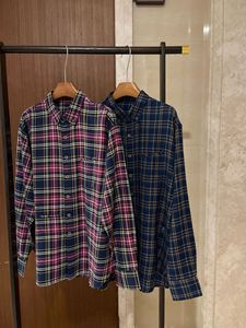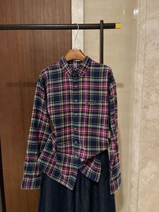 南油日系小众海马刺绣时尚撞色格纹宽松口袋翻领长袖衬衫女25早秋