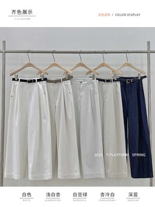 [简裁]T-PLATFORM 早秋慵懒风休闲裤女梨形身材显瘦阔腿裤15189