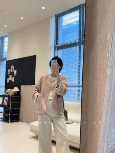 粉黛佳人 新中式温婉提花圆领宽松亮片刺绣外套D6913S