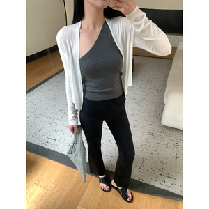周淼ZHOUMIAO【遛弯多造型】天丝羊毛极简开衫 慵懒短款针织衫女