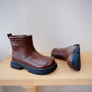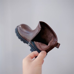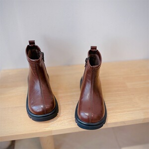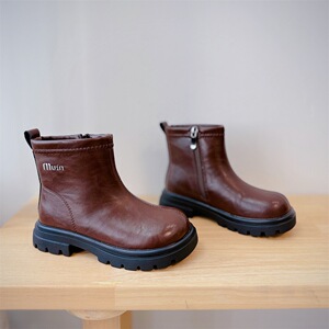 2025冬季新款童鞋男童真皮简约马丁靴韩版加厚保暖女童百搭时装靴