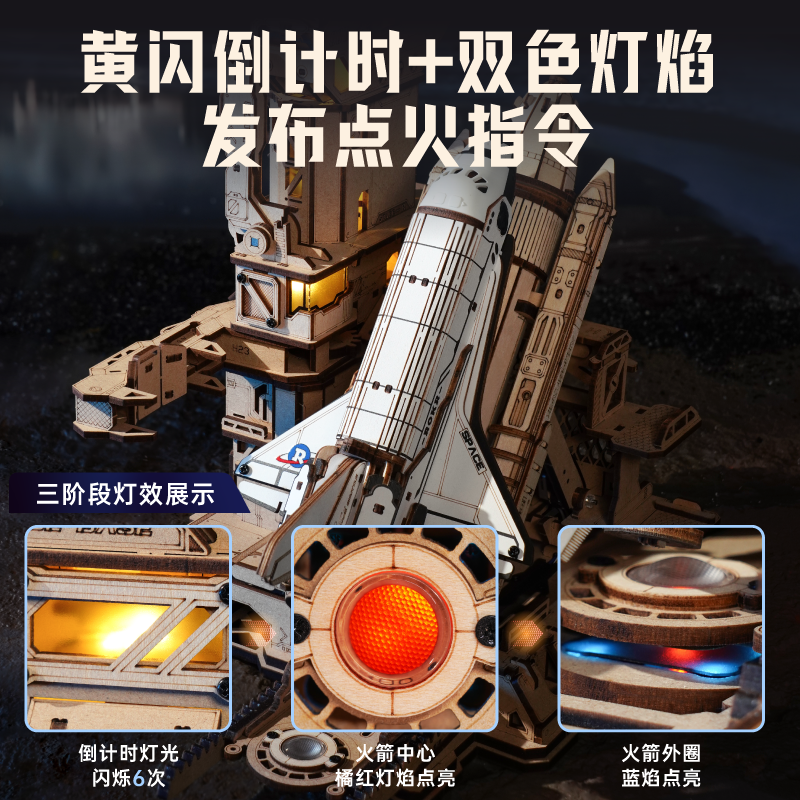 rokr若客航天飞机男孩礼物生日diy手木质拼装模型积木玩具女生