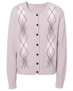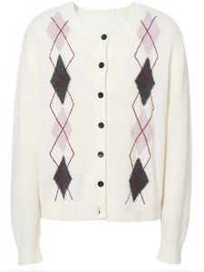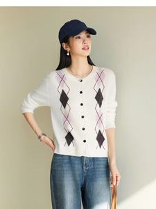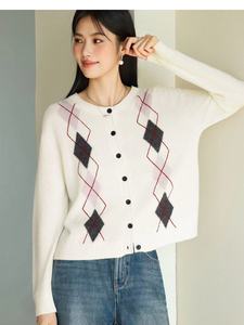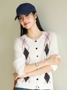 伊*L圆领菱形格针织开衫2025秋新款慵懒风百搭休闲毛衫1G9932351