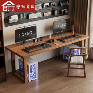 澳铂美式双人实木电脑桌带排插卧室电竞桌椅一套办公书桌学生家用