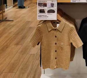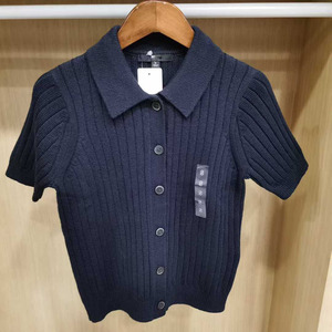 日单女装罗纹POLO领针织开衫短袖毛衣毛衫外套25新款针织衫479968