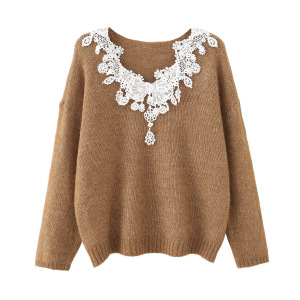 美拉德蕾丝V领针织衫女2025秋季新款宽松慵懒风减龄休闲套头毛衣