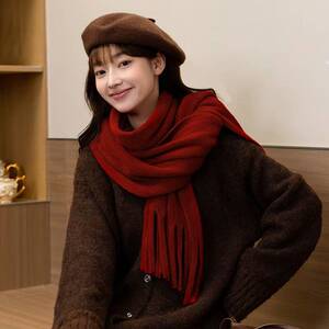 日系简约仿羊绒加厚围巾女冬季韩版百搭流苏针织长款围脖披肩情侣