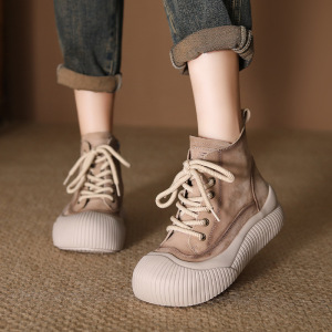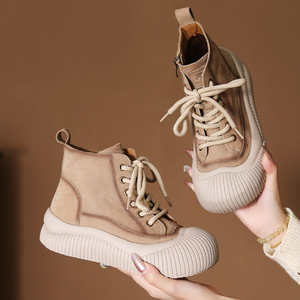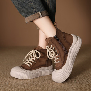 头层牛皮2025秋冬新款复古休闲高帮鞋女靴子百搭舒适平底软皮女靴