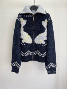 深圳南油高版本供应25新款秋冬双鱼提花慵懒保暖针织拉链开衫