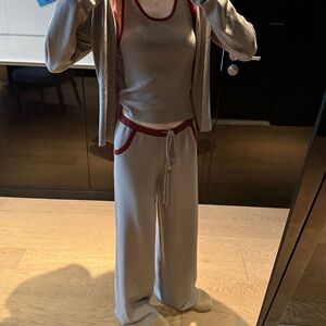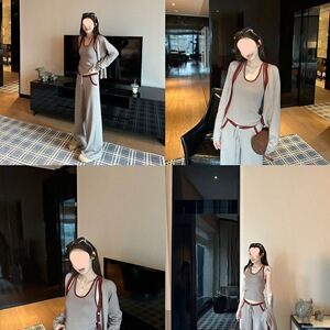 2025秋季新款套装洋气气质减龄吊带三件套时尚阔腿裤休闲开衫串珠
