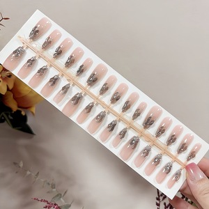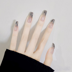 S296-预制甲穿戴甲成品条装满钻美甲片渐变灰假指甲贴片纯欲女神