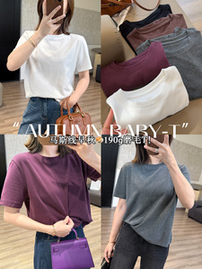 早秋磨毛bay绒宽松短袖!遮肉显瘦休闲上衣马斯线T恤内搭