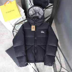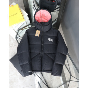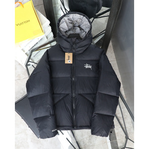 STUsss新款经典纯色百搭刺绣拉链连帽短款棉服男女同款街头保暖