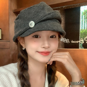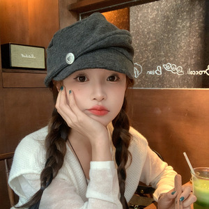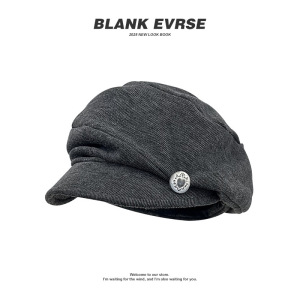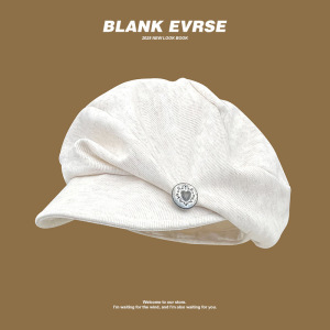 日系褶皱银标宽松贝雷帽子女秋川西旅游透气八角帽休闲百搭画家帽