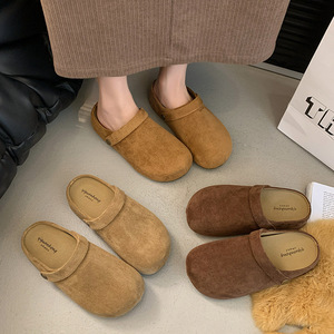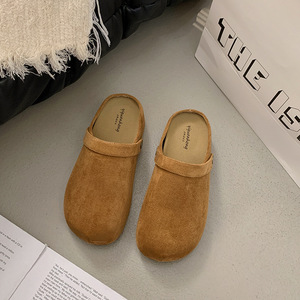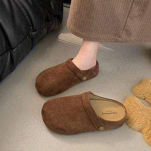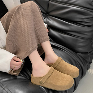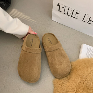 舒适厚底日系鞋女两穿一脚蹬懒人鞋舒适穆勒鞋复古外穿包头半拖鞋