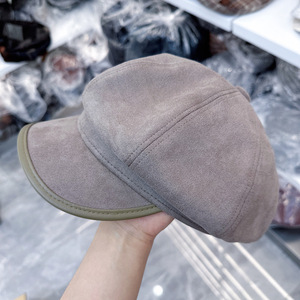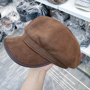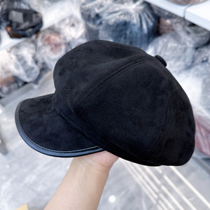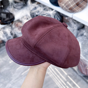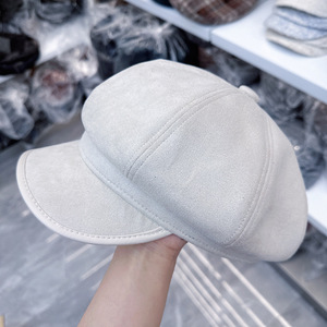 批发韩国2025年早秋新款英伦复古纯色八角帽女大头围显脸小报童帽