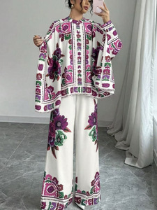 跨境2025秋季新品欧美外贸独立站亚马逊时尚宽松印花女士套装