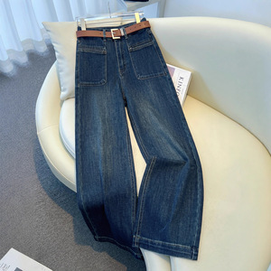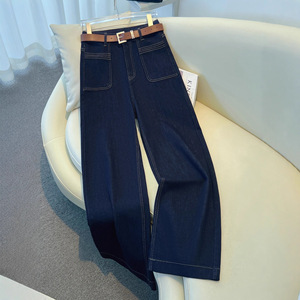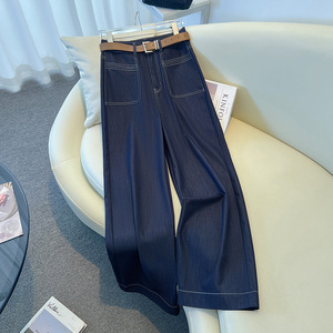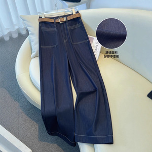 2025时尚新款直筒牛仔裤女宽松窄版遮跨高腰显高显瘦垂感阔腿裤