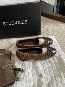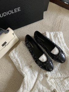 羊皮葡萄妈同款经典拼接圆头芭蕾平底鞋蝴蝶结低跟小香风浅口单鞋