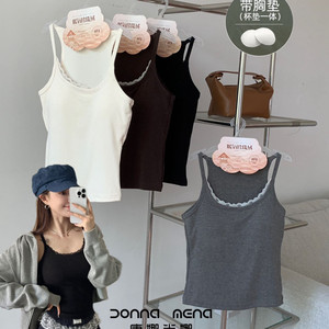 唐娜米娜6685蕾丝工字背心女外穿固定杯美背免穿文胸内衣打底衫秋
