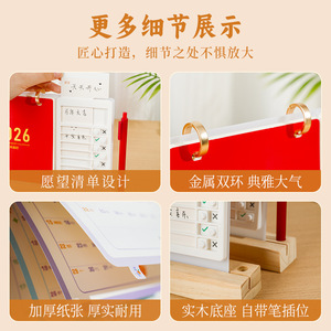 2026年自律打卡台历创意桌面计划木质日历摆件马年企业台历定制