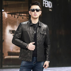 新款秋季头层牛皮油蜡复古翻领真皮皮衣男士时尚短款修身真皮夹克
