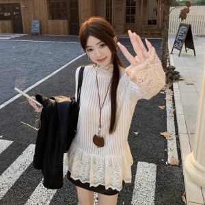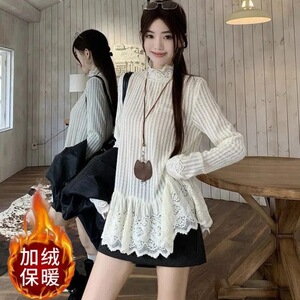 设计感蕾丝花边长袖T恤女装2025秋季新款小众减龄百搭打底衫上衣