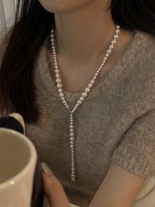 倪妮同款多层叠戴施家珍珠项链Y形大小渐变长款项链轻奢小众颈链