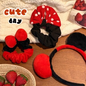复古撞色拼接发圈发箍少女百搭波点蝴蝶结大肠发圈扎马尾装饰发绳