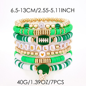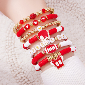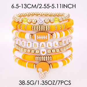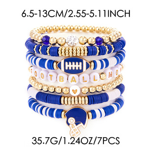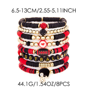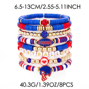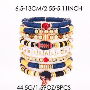 8件套装棒球手链多层叠戴水晶爱心五角星字母软陶友谊弹力手串