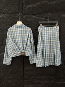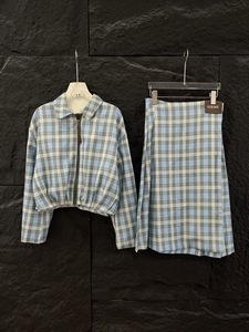 高品质~新款格纹褶皱夹克外套长半裙显瘦法式优雅慵懒风简约时髦