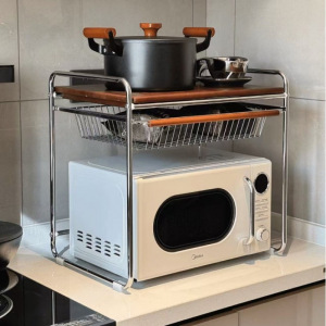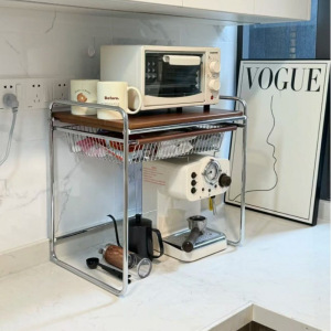 中古风家用微波炉置物架带拉篮厨房台面收纳架电饭煲桌面置物架