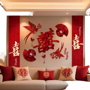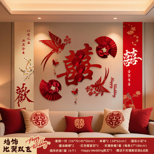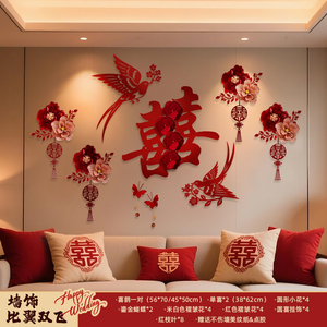 结婚客厅背景墙拉花新房卧室婚房布置套装男女方装饰婚庆用品大全