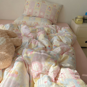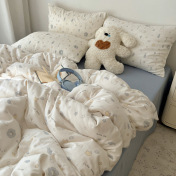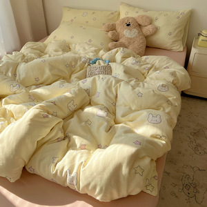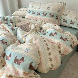 韩式卡通小狗透气双层纱布全棉四件套超柔纯棉被套床单床上三件套