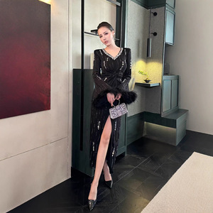 2025秋季新品气质轻奢满钻修身连衣裙歌手舞会宴会派对礼服连衣裙