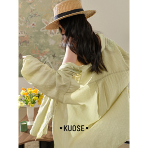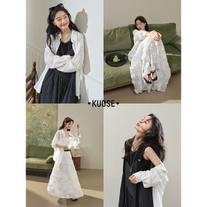 阔色白色蕾丝肌理感宽松衬衫外套女2025春夏季新款蓝色开衫衬衣