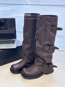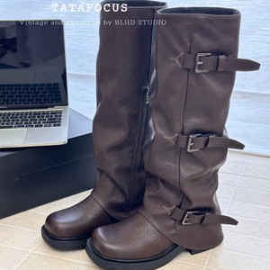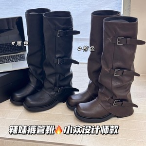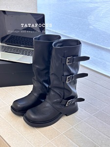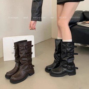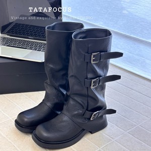 欧货磨砂牛皮堆堆靴女2024秋穿短靴百搭休闲时尚复古高帮马丁靴潮