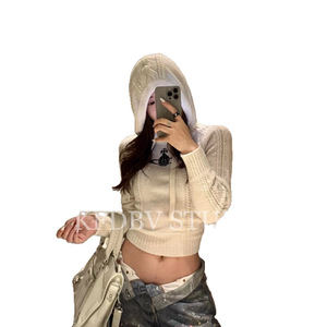 韩国限定~25早秋新款土星提花白色连帽针织衫休闲套头毛衣
