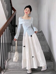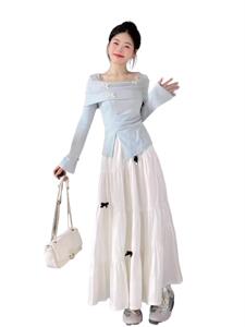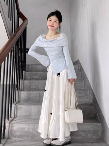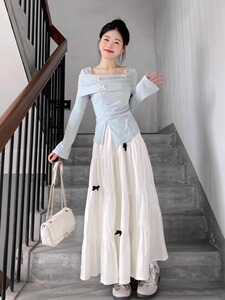 2025早秋季穿搭一整套秋装搭配一字肩上衣半身裙韩风小个子套装裙