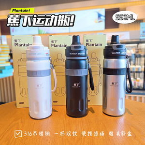 正版蕉下大容量镜面无缝上学户外手拎双直饮吸管保温杯子运动水壶