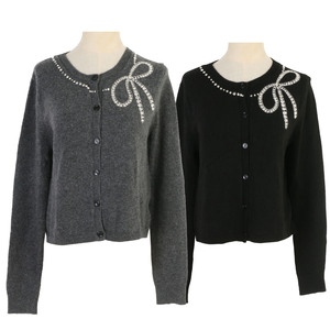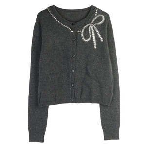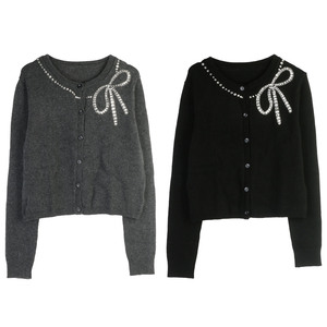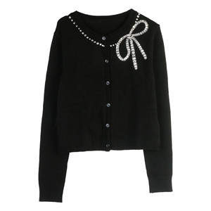 秋冬新款长袖针织开衫重工钉钻蝴蝶结修身气质法式圆领短款针织衫