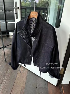 2025春秋新款时尚百搭立领豹纹牛仔外套女短款小个子宽松显瘦夹克