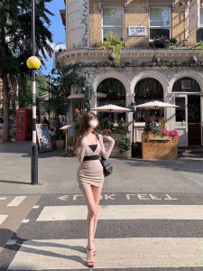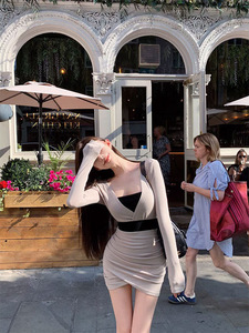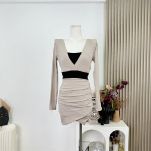 Chill巧儿【层次美学】高级感气质修身撞色假两件褶皱长袖连衣裙