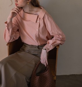 Daijyart“日落回信”工艺洗天丝锦暗格纹翻领斜门襟长袖衬衫上衣